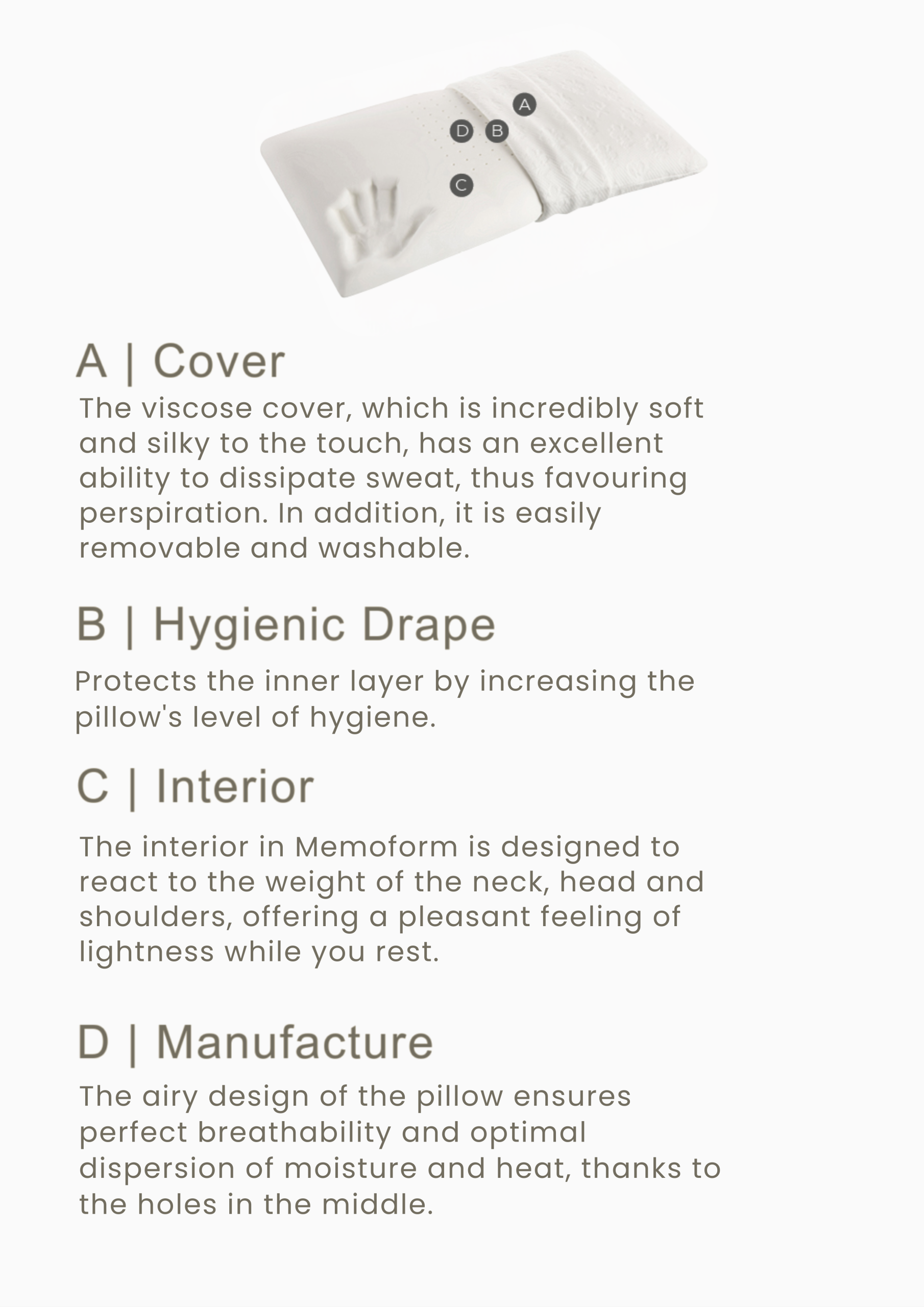 The Memory Standard Classico pillow from the Classico collection pairs a traditionally shaped profile with performance-driven materials. The removable Viscose cover is silky soft and breathable. Inside, the Memoform® memory foam layer reacts to the weight of your head and neck, helping to alleviate pressure points and promoting natural alignment.